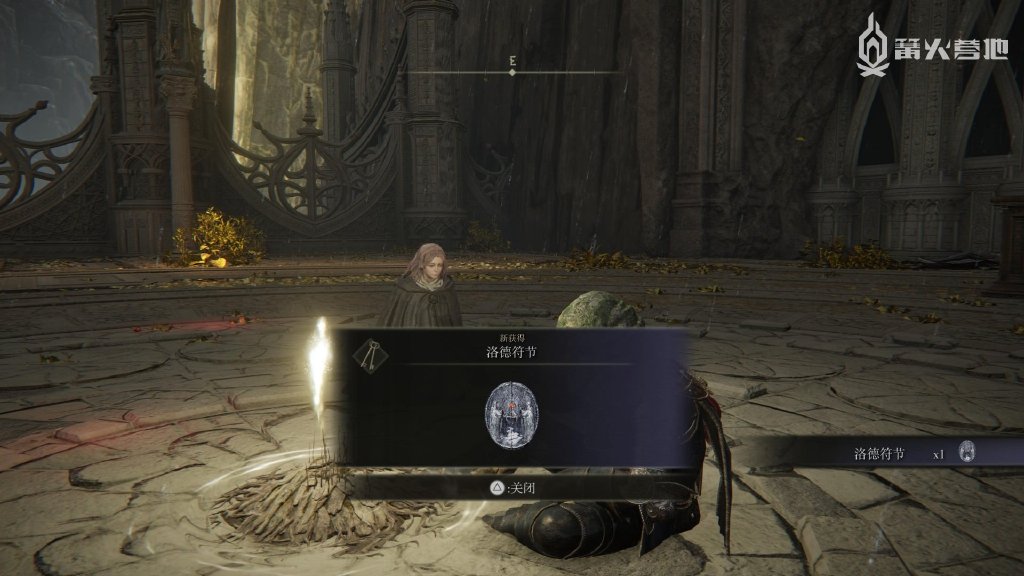 打败 Boss 后触摸黄金树发现无法进入,回头激活赐福,梅琳娜会交给玩家重要道具「洛德符节」,才能前往巨人山顶。