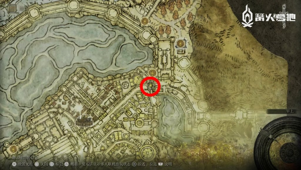 剧情后被传送到赐福「“灰烬王城”罗德尔」附近,我们的目标依旧是此前进不去的黄金树门口,从下图位置坐升降梯前进,挑战 Boss「“百智爵士”基甸·奥夫尼尔」。