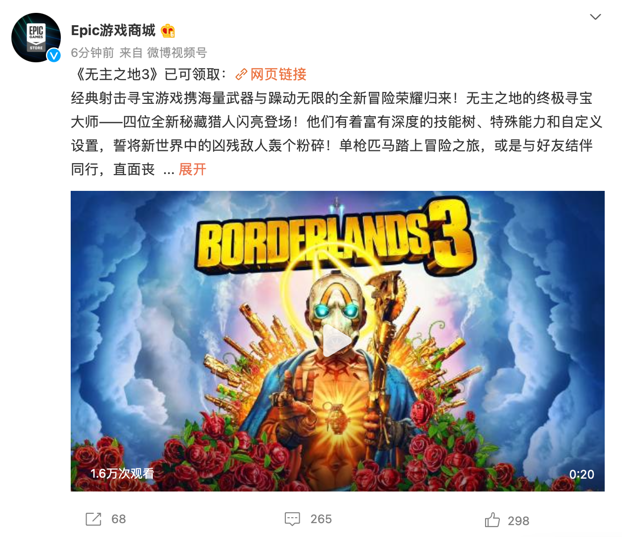 EPIC又送神秘游戏大作了,本周送的神秘游戏是《无主之地 3》,价值195元,E宝就像个舔狗,疯狂送礼,结果不妨碍我仍然喜欢高冷女生Steam。